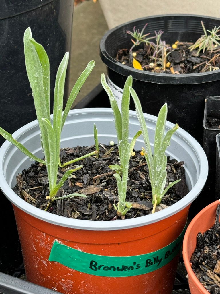 After this, we could start planting! Most of the plants we bought as tube-stock (very small plants) from the local Indigenous plant nursery in Newport Lakes, or from the ‘Friends of Cranbourne Gardens’ sale, but a few were bought as slightly bigger plants from other nurseries. Some plants we had been growing in pots for the last few years while renting. I also grew some things from cuttings, for example the now thriving creeping boobialla / myoporum ground cover was grown from cuttings from my friend Pierre’s garden, and other plants I grew from seed, like Billy Button wildflowers – first on my kitchen window sill in egg cartons, then transplanted to pots outside and then into the garden when they looked strong enough. We didn’t plant everything at once, but have slowly planted more things over time.